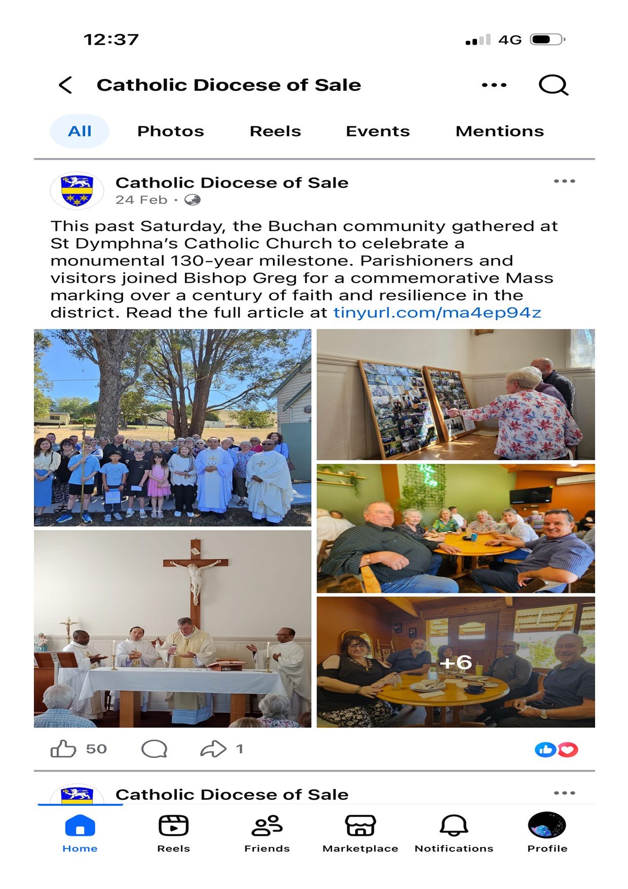 Saturday 21st Feb, the Buchan community gathered at St Dymphna’s Catholic Church to celebrate a monumental 130-year milestone. Parishioners and visitors joined Bishop Greg for a commemorative Mass marking over a century of faith and resilience in the district. Read the full article at tinyurl.com/ma4ep94z